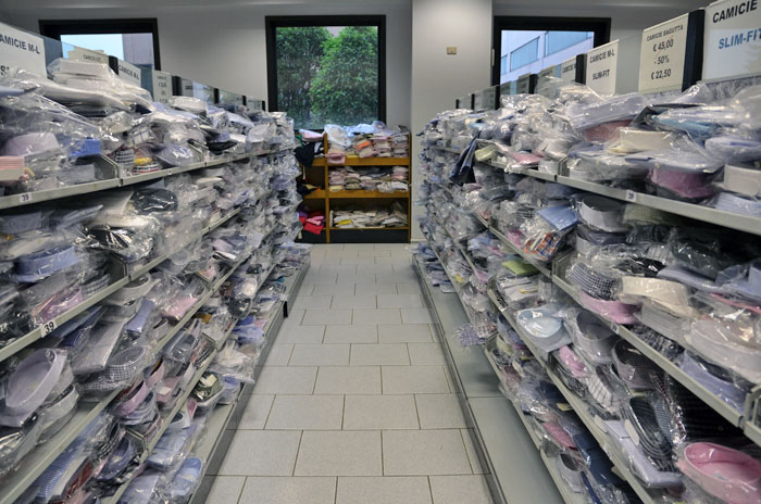 このアウトレットは中心地の店舗と比べると店内は乱雑としていますが、置いてある商品はもちろん正真正銘バグッタの商品。紳士・婦人用のシャツだけではなく、バグッタのパンツ、ジャケット、小物まで幅広い商品、サイズが揃っています。ただその他の商品はバグッタ・タイム(Bagutta time)など規格が違うようで、質に関してはやはりただのバグッタ(Bagutta)とだけ表記してあるもののほうが良いようです。