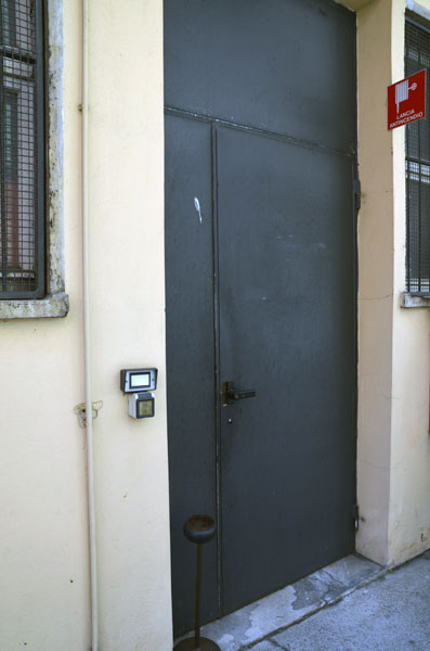 建物の中に進み、右手奥に進んでゆくとある扉。ここでもう一度インターフォンを押します。